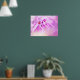 Ein zauberhaftes Foto hübscher rosa Blume blüht. Diese Blume haben lange dünne Blätter, mit einem roten Mittelkopf. Der Hintergrund ist ein sanftes Pastellrosa mit weichen, mickrigen Blasen, goldenen Glitzern und verblassten Handschriften, um ihm einen magischen romantischen Flair zu geben.