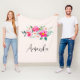 Decken mit einem skurrilen Aquarellbild. Ein wunderschönes Blumenarrangement mit hellrosa und pastellrosa Farbtönen, eingebettet in grüne Blätter und Zierschriften.