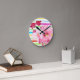 Hübsche rosa Blume und Streifen Runde Wanduhr