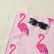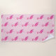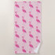 Badetuch in einem stilisierten Flamingomuster in den subtilen Schatten der Fuchsie und des Pinks auf einem rosa Hintergrund