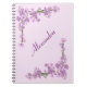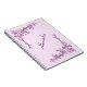 An den Ecken dieses Notizbuches schmückt ein Zweig hübscher rosafarbener Kirschblüten vor einem rosa Hintergrund.