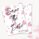 Romantik ist in der Luft! Teilen Sie die Liebe mit wunderschönen rett-the-date-Ankündigungskarten, die mit einer Kaskade von rosa Herzen geschmückt sind.
