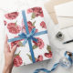Dieses hübsche gemusterte Verpackungspapier bietet realistische Stilbilder für rosa Carnation Blume Set vor einem weißen Hintergrund. Die Blüten sind mit Blütenblättern in Rosa, Lila und Bordeaux in hellgrünen Stielen gestaltet.