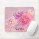 Ein Mauspad mit einem Foto mit einem Strauß rosa Nelken. Set auf einem traumhaften ätherischen Hintergrund.