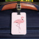Beschmutzen Sie Ihr Gepäck von weit weg mit diesem stilvollen AcrylGepäckanhänger. Grafiken eines rosa Flamingos gegen einen weißen und rosa Tupfenhintergrund, verziert die Front, mit gerade dem Tupfenmuster, auf der Rückseite. Die Rückseite des Umbaus hat Ihre persönlichen Kontaktinformationen, die im schwarzen Text erfolgt sind, der bereit ist zu personifizieren.