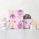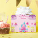 Ein hübsches personalisiertes Geburtstagsgeschenk der Prinzessin mit einem hübschen blonden Mädchen in einem Queen-Ball-Gewand mit rosa Bögen, die vor einem rosa Schloss stehend sind. Niedliche Geschenkpackung für ein kleines Mädchen. Fügen Sie den Namen Ihres Kindes unter den Schlossstufen dieses Märchendesigns.