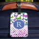 Mit Monogramm Gepäckmarke mit hübschen Schmetterlingen und Dots Design in Blues, grün und lila.