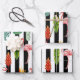 Hübsche Schwarz-weiße Streifen mit Flamingo Cactus Geschenkpapier Set