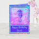 Ein königsblaues Seepferd schwebt vor einem wunderschönen blauen und rosa Hintergrund. Dieses ozeanische Design ist farbenfroh und brillant. Glücklich Geburtstag, mit dem Namen des Empfängers, ist auf der Vorderseite dieser fröhlichen Karte. Im Inneren, auf der links, ist ein weiteres Seepferd in einem reichen Blau gerahmt. Die Geburtstagsbotschaft auf der rechten Seite lautet: Möge die Freude, die du in der Vergangenheit verbreitet hast, an diesem Tag wieder zu dir zurückkehren. Herzlichen Glückwunsch zum Geburtstag! Ihr Name wird unter dem Gruß platziert. Die Rückseite der Karte lautet: gemacht nur für Sie. Es gibt auch eine Vorlage für den Monat und das Jahr. Der gesamte Text ist leicht zu ändern oder zu entfernen.