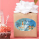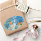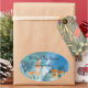 Eine Hübsche Weihnachtsdörfsszene auf einem handlichen ovalen Aufkleber, und eine individuelle Typografie für eine einfache Personalisierung des Grußgeschehens und Ihres Namens.