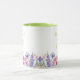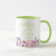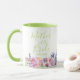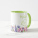 Diese hübsche, farbenfrohe Tasse ist ein besonderes Geschenk für die Brautmutter und verfügt über einen Aquarellgarten mit Wildblume "Mutter der Braut" in einer eleganten handgeschriebenen Typografie in einem sanften Grün, das zum Innern und Griff passt. Personalisieren Sie mit Ihrem Hochzeitstag.