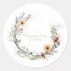 Hübsche Wildblumen, die Namen und Datum des Hochze Runder Aufkleber