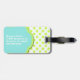 Stilvoller Chartreuse und Aquamarine-Gepäckanhänger, mit einem Tupfenmuster. Ein dekorativer Textbereich, auf der linken Seite des Umbaus, hat weißen kundenspezifischen Text, auf der Front und Rückseite, bereiten vor, um zu personifizieren. Groß für Gepäck und mehr.