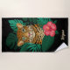 Dieses wunderschöne Badetuch ist mit handgezeichneten / bemalten Leoparden, tropischen Dschungel-Blätter und einer hellrosa Hibiskus-Blume auf einem benutzerdefinierten Hintergrund (schwarz dargestellt) ausgestattet. Eine Textvorlage ist für eine einfache Personalisierung vorgesehen. Modern, schön und einzigartig - macht ein tolles Geschenk! *Kunstwerk / Illustration von Tracey Khalei / Orabella Prints