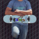 Hübscher Eidechsengesang mit Mikrofon-Cartoon Skateboard