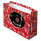 Suchen Sie eine farbenfrohe und niedliche Geschenktasche für Ihren Liebsten? Feiern und beenden Sie Ihr Geschenk für Ihren Liebsten mit dieser Geschenktasche. Diese hübsche Geschenktasche ist mit farbigen, folienstrukturierten Lollipops auf rotem Hintergrund ausgestattet. Diese Abbildung zeigt Lollipops, die sich verzweigen und ihre Schönheit miteinander teilen. Diese Geschenktasche ist die ästhetische Essenz von Harmonie, Schönheit, Farbe und Glanz. Personalisieren Sie diese Geschenktasche vorne und hinten. Ersetzen Sie einfach "Für meine Liebe", "Valentina" und "Para Mi Amor" durch den gewünschten Text. Diese Geschenktasche ist ideal für alle, die Dekoration, Geschenke oder Goodies zum Valentinstag oder einer romantischen Themenparty haben.