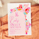 Feines, lebendiges Hübsches Gartenrosa, rot und blau blumensüße 16 Geburtstagsparty mit kühnen, übergroßen handgemalten abstrakten Blume mit einem eleganten und modernen Schriftart mit Pinselschrift. Ideal für Frühling, Sommergeburtstag Party!