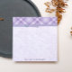 Hübsches lila Karo-Muster und eine weiche Blüte verbunden mit einem simulierten Band mit einem blauen Verschluss. Personalisieren Sie Ihre Nachricht mit Ihrem Namen oder Ihrer Nachricht in der passenden Schriftart-Schrift.