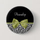 Personalisieren Sie sich, indem Sie den Namen eines Girly Girl zu diesem hübschen schwarz-weißen leopard Print-Namensschild-Taste mit einem niedlichen Frühling grüne Band verbunden in einem eleganten Bogen. Dieses schicke und stilvolle Tierdesign ist ein flaches gedrucktes Bild und enthält kein echtes Band.