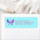 Ein hübscher, rosa und lila, bunt dekorativer Schmetterling mit extravaganten gemusterten Flügeln und langen, zarten Antennen, ein cooles und farbenfrohes Design. Hellblauer Hintergrund.