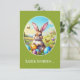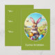 Ein hübscher Osterhase mit Ostereiern, in einer idyllischen Landschaft. Digital erstellt. Oval Hochkant.