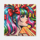 Farbenfrohe niedliche Pop Art Comic Mädchen mit Ferkeln und Bogen in ihren Haaren.