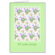 Eine sehr hübsche 101. Geburtstagskarte mit rosa Rosen, cremig weißem Mock Orange und lila Lavendel auf weißem Hintergrund mit blassgrüner Grenze, von Judy Adamson handbemalt. Sie können die innere Nachricht personalisieren.