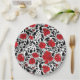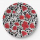 Hübsches Blumenmuster in Rot, Schwarz und Weiß Pappteller