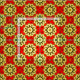 Nahtlos dekoratives geometrisches Muster mit geometrischen Formen in rot, gelb und schwarz.