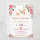Feminine Schmetterlingsherz Braudusche Einladung mit einer prächtigen Abbildung von Aquarellblüten und heißen rosa Blume und ein paar aufwändige Goldschmetterlinge