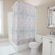 Ein eleganter DesignerDuschvorhang mit einem dekorativen Muster in der spätesten Farbe des Jahres 2016 - Rosenquarzrosa und Serenityblau.