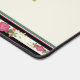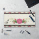 Hübsche weibliche Schreibtischmatte aus Elfenbein, in der Mitte eine große, fett rosa Blume. Ein grüner, rosa und schwarzer Rand, oben und unten auf der Matte, hat rosa Blume, die durch sie laufen. Personalisieren Sie das Single Black Letter Monogramm, um Ihre Bedürfnisse zu Anzug. Liebliche Geschenkidee für sie.