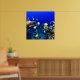 Eine wunderschöne Unterwasserlandschaft mit hübschen Fischen, die auf diesem phantastischen Poster entlang des Korallenriffs schwimmen.