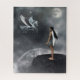 Eine hübsche, weiße Fee wartet auf einem Berg und sieht zu, wie ein schönes, weißes Pferd auf sie zukommt. Dies ist vor dem Hintergrund eines Sternenhimmels mit einem Mond und einem magischen Planeten.