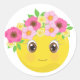 Hübsches Girly Emoji mit Blumen-Aufklebern Runder Aufkleber