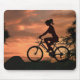 Ein hübsches Mädchen auf dem Weg, Zuhause fährt ihr Rad bei Sonnenuntergang