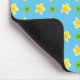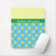 Ein hübsches Mousepad zum Personalisieren, mit einem Muster von Primrosen und grünen Polka Punkten auf einem Sky Blue Hintergrund, gepaart mit Gelb- und Weißpolka-Punkten; Teil der Posh & Painterly 'Primroses' Kollektion.