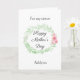 Eine grüne Aquarelllaurel und rosa Blume hübsch Happy Mother's Day Niece Card, die Sie leicht mit ihrem Namen personalisieren können. Die innere Nachricht dieser hübschen Nichte Mütter Tageskarte liest eine herzliche Nachricht, die Sie auch personalisieren können, wenn Sie gewollt haben. Der Rücken hat den gleichen grünen Wasserfarbenlaurel mit rosa Blume, wo man die Namen des Kindes(der Kinder) oder was auch immer man möchte angeben kann. Eine süße Muttertagssache, die personalisiert und sicher geschätzt ist.