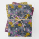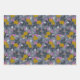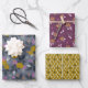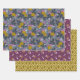 Koordination von Party Packpapier mit verschiedenen Blumenmotiven in Gold, warmen Wein, Mohnrosa und tiefgraue Blues.