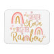 Eine schöne motivierend Unterstützungsnachricht auf einem Magneten. Die inspirierend Zitat-Staaten "Je größer der Sturm, desto heller der Regenbogen" mit rosa und goldfarbenem Boho Regenbogen und Herzelementen dekoriert. Die perfekte ermutigende Geschenkidee für jemanden, der eine schwierige Zeit durchlebt. Oder einfach nur um sich daran zu erinnern, dass es hellere Tage gibt.