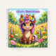 Ein niedliches personalisiertes Sketch, dem Sie Ihren Kindernamen hinzufügen können. Behalt all ihre Skizzen in diesem süsslichen Notizbuch. Ein zauberhaftes Pony mit einem Ring aus lila und rosa Blume auf ihrem Kopf. Eine süße whimsical ai Illustration, die hell und farbenfroh in Rosa, Blau, Gelb und lila ist.