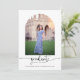 Modernes Schwarz-Weiß-Script Abschluss Arch Foto Einladung mit eleganten, handgeschriebenen Skripten zusammen mit einem Foto in voller Größe auf der Vorderseite und einem quadratischen Foto auf der Rückseite. Alle Texte und Farben sind vollständig anpassbar - perfekt für Ihre einfachen, eleganten Graduierungsankündigungen. Bitte kontaktieren Sie uns unter cedarandstring@gmail.com , wenn Sie Hilfe beim Design oder den passenden Produkten benötigen.