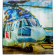 Airbus Schwerlast H225 ziviler Hubschrauber am Boden. Geschichte und Gegenwart der Luftfahrt. Simuliertes Ölgemälde aus strukturierter Fotografie. Duschvorhang zu dekorieren Ihr Badezimmer für Spaß und gute Laune.