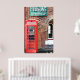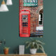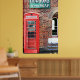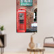 Ein Foto eines rostigen alten Vintagen Schildes, auf dem Hudsons Super Soap über einer altmodischen roten Telefonbox im britischen Stil gepriesen wird.