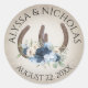 Hufeisen und Blütenblumen rustikale Scheune Gefallen Aufkleber mit Braut und Bräutigam Namen und Hochzeitstag.