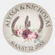 Hufeisen und rosa, bordeauxrote Blume rustikale Scheune Gaumen Aufkleber mit Braut- und Bräutigamen und Hochzeitstag.