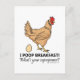 Hähnchen Kacke Frühstück Funny Design mit einem braunen Huhn / Henne, die ein braunes Ei gelegt. "Ich Kackte Frühstück! Was ist deine Supermacht?" Hühner haben, wie alle Vögel, einen Single, der als Cloaca bezeichnet wird, durch den sie Eier ausscheiden, sich paaren und legen. Man könnte also sagen, dass Eier aus einem Hühnerbum kommen. Und es ist fanig, da das gleiche Loch beiden Zwecken dient. Aber wenn ein Ei herauskommt, wird die Cloaca des Hühners nach innen gedreht, sodass das Ei nicht mit dem Darm in Berührung kommen kann (fäkale Materie Nisttigkeit). Jetzt können Sie Ihren Kindern oder Freunden sagen, woher Hühnereier kommen!