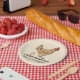 Huhn kackt Frühstücks-lustigen Entwurf Pappteller