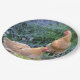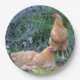 Dieser Pappteller kennzeichnet 2 lederfarbene orpington Hühner, die unter dem russischen Salbei stillstehen. Groß für Partys und Picknicks. Wählen Sie Ihre Größenplatte.