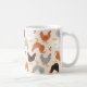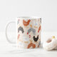 Vieh, Landhühner und Hahnkaffee-Tasse. Spaßhuhnmuster auf hellem beige Hintergrund, französischer Landentwurf.